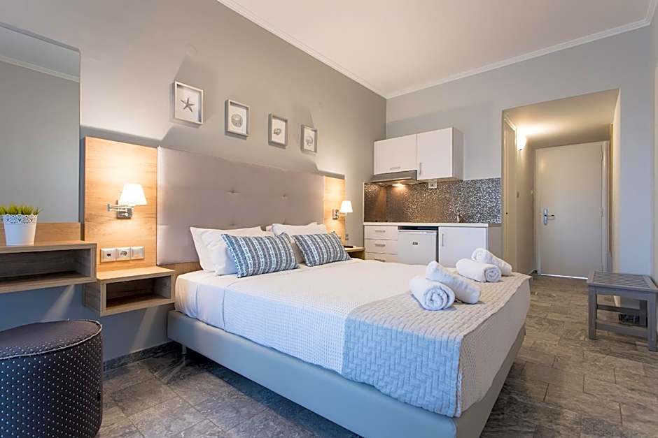 Superior Luxurious with Sea view is 538 square feet and includes a king-size bed 150-183 width plus a sofa bed plus balcony, satellite tv , hairdryer, ironing set, safe, bathrobes, and slippers.